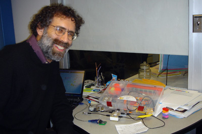 At MIT I was the guest of my old artificial-life-researcher friend Mitch Resnick of the Media Lab, we met at Alife 1 at Los Alamos in, like, 1987. Mitch has been working with the Lego company over the years, and is now guiding a Lego spin-off startup company Playful Invention Company with a product called the PicoCricket Kit; their aim is to make robotics kits that might appeal to girls as well as to boys. The idea is to involve sound, color, and touch; to make the devices more haptic and sensuous. He says that over the years the Media Lab has become more and more hardware oriented.