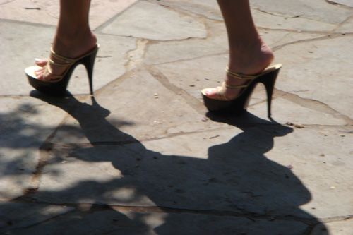 Today’s illos include a couple of scans from this nice new book I got, edited by Larry Silver, Hieronymus Bosch — although the image immediately below shows the shoes of the owner of chihuahua depicted further below, spotted where else but the Los Gatos Sunday market.