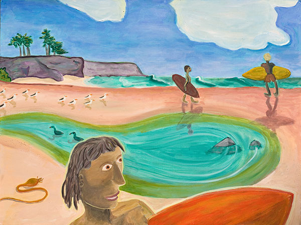 I’m calling this one Surf Pilgrim, because there’s a surfer in the foreground with a determined look about him. As usual, you can find out more about my paintings on my Paintings page.