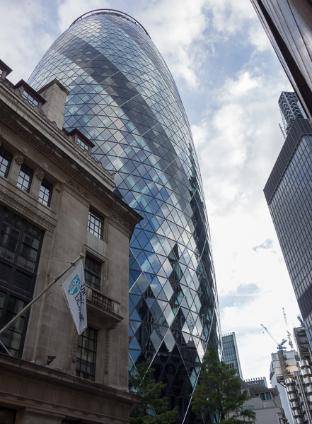 Okay, this was one of my favorite things in London, a very large new building called the Gherkin, set in the financial district, plump and gravid, like a living UFO about to spawn.