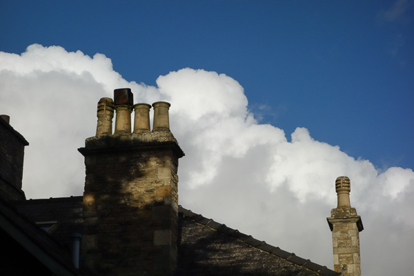 Sunset from our room in South Kensington. That whole chimney-pots thing. Mackerel sky. Golden, changing every second. Like I always say, if it were for some reason difficult to see clouds, what a fetish of them we’d make. But how little I remember to stare at them. The world going all out, every moment of every day. Taking a trip helps me wake up.